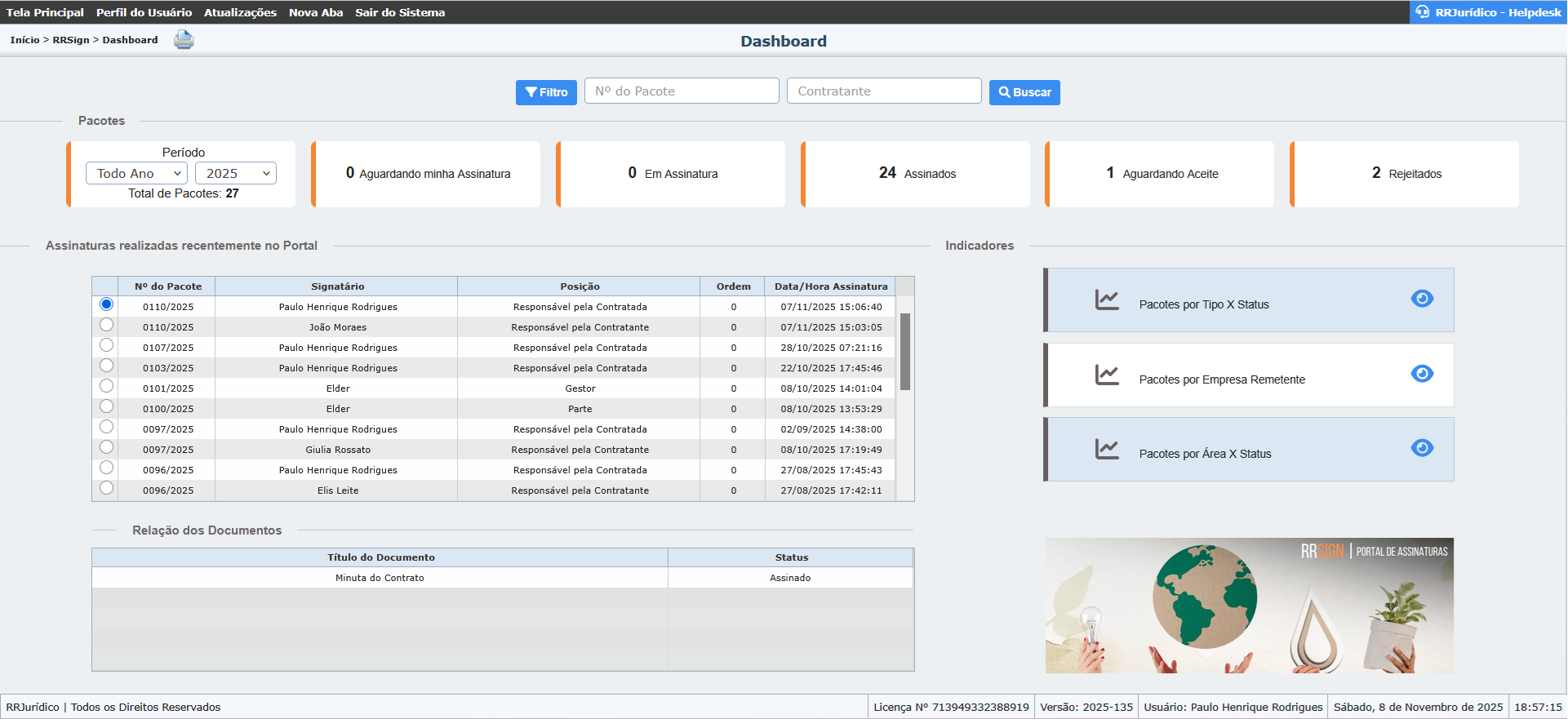 - Assinatura Eletrônica: formalização segura via RRSign, com validade jurídica e alertas automáticos.